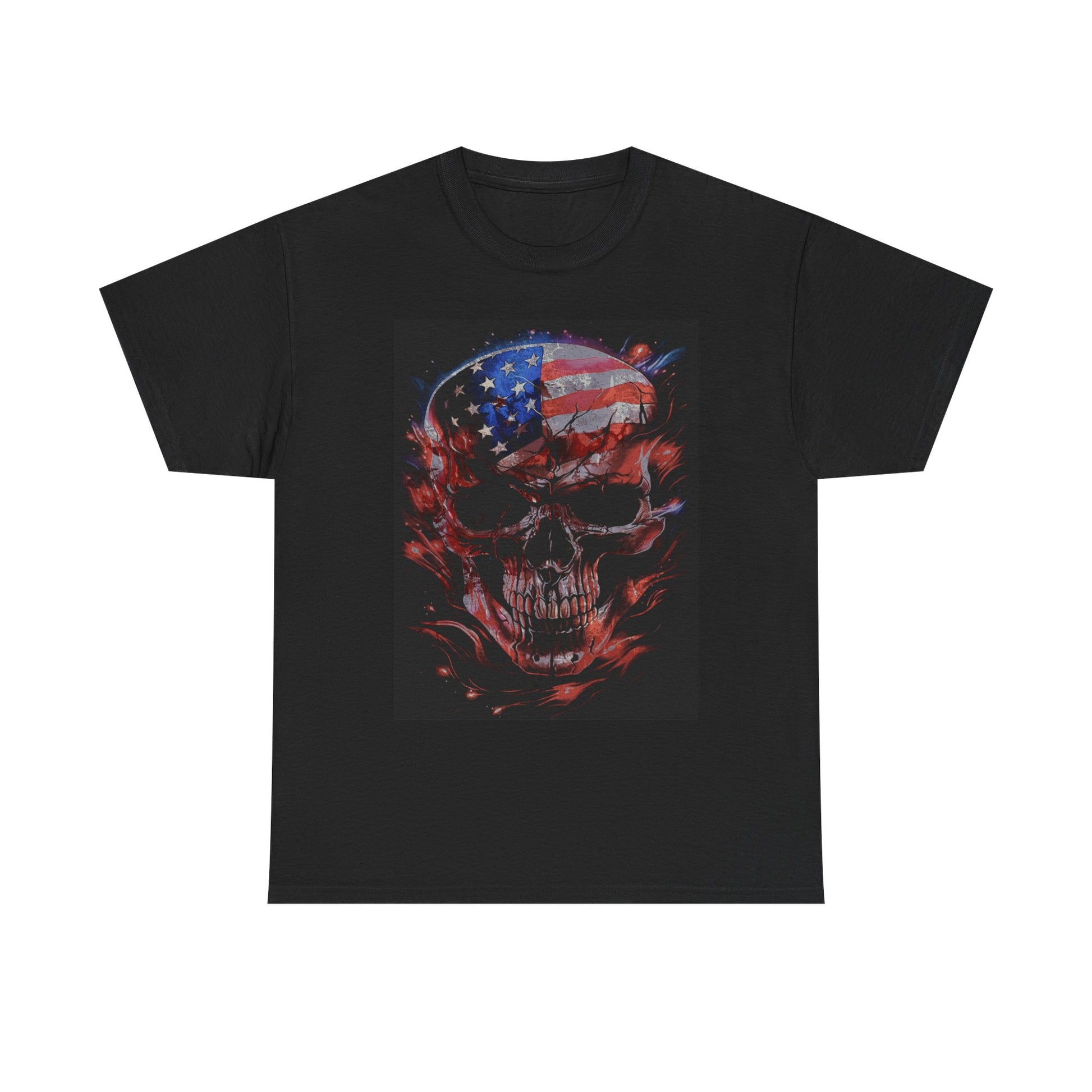 American Flag Skull T Shirt Classic Heavy Cotton Tee Gift front and back!
